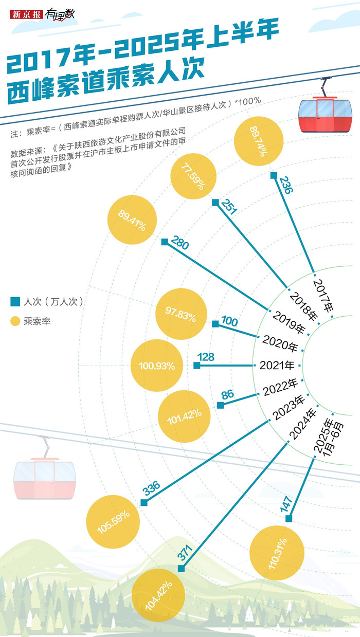 2025年5月,陕西旅游文化产业股份有限公司(以下简称陕旅)上交所主板IPO申请已获受理。据9月15日其首轮审核问询函的回复,2025年上半年,其运营的华山西峰索道收入1.5亿元,占所有营收的30%,成为支撑陕旅上市的第二大支柱。