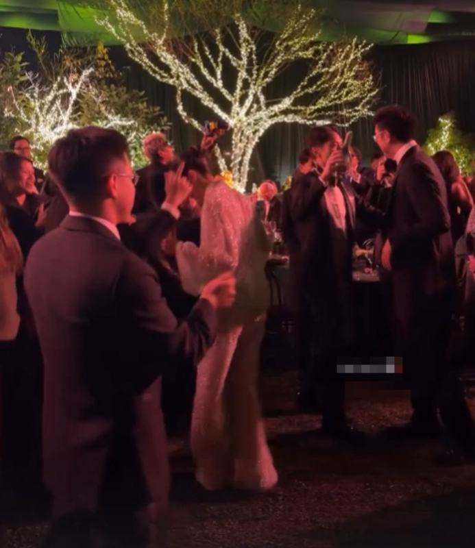 晚宴期间,霍启仁估计是喝上头了,与亲友抱在一起载歌载舞,现场气氛十分欢快。