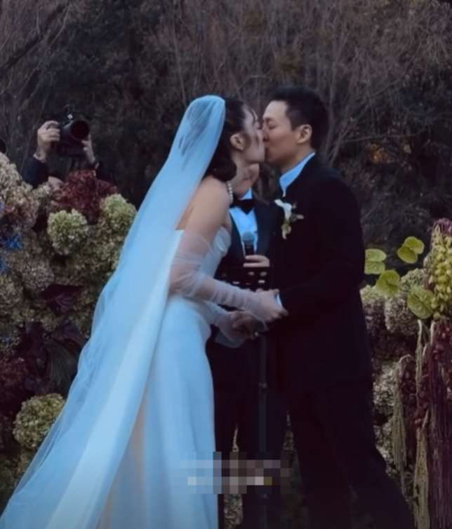 两人完成仪式后,亲友们向他们抛撒花瓣,霍启仁的父亲霍震霆及哥哥霍启刚站在前排位置,霍启刚忙着给弟弟录视频,而母亲朱玲玲身穿白色礼服,也拿着手机给儿子录像。