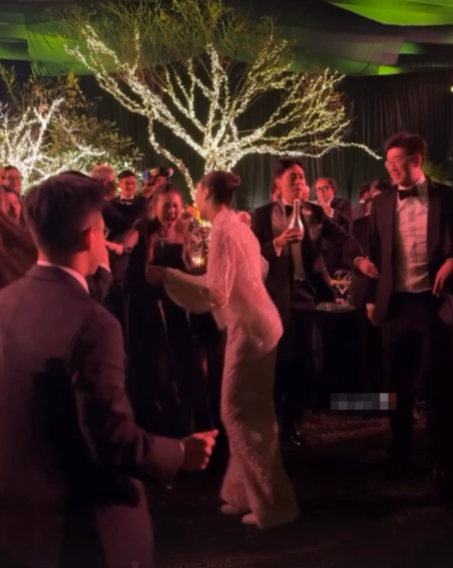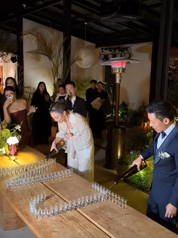 现场来了很多泰国友人,Namfon还用泰文和亲友交流,到了晚上迎来热闹的派对,两人不仅要给亲友敬酒,还挑战了倒酒的小比赛,最终是妻子Namfon取胜。
