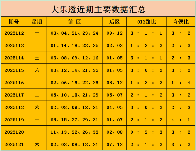 前区奇偶分析:上期前区开出奇数3个,偶数2个,奇偶比2:3,近10期奇偶比26:24,整体看奇数球出现占优,本期预计偶数球热出,推荐奇偶比2:3。
