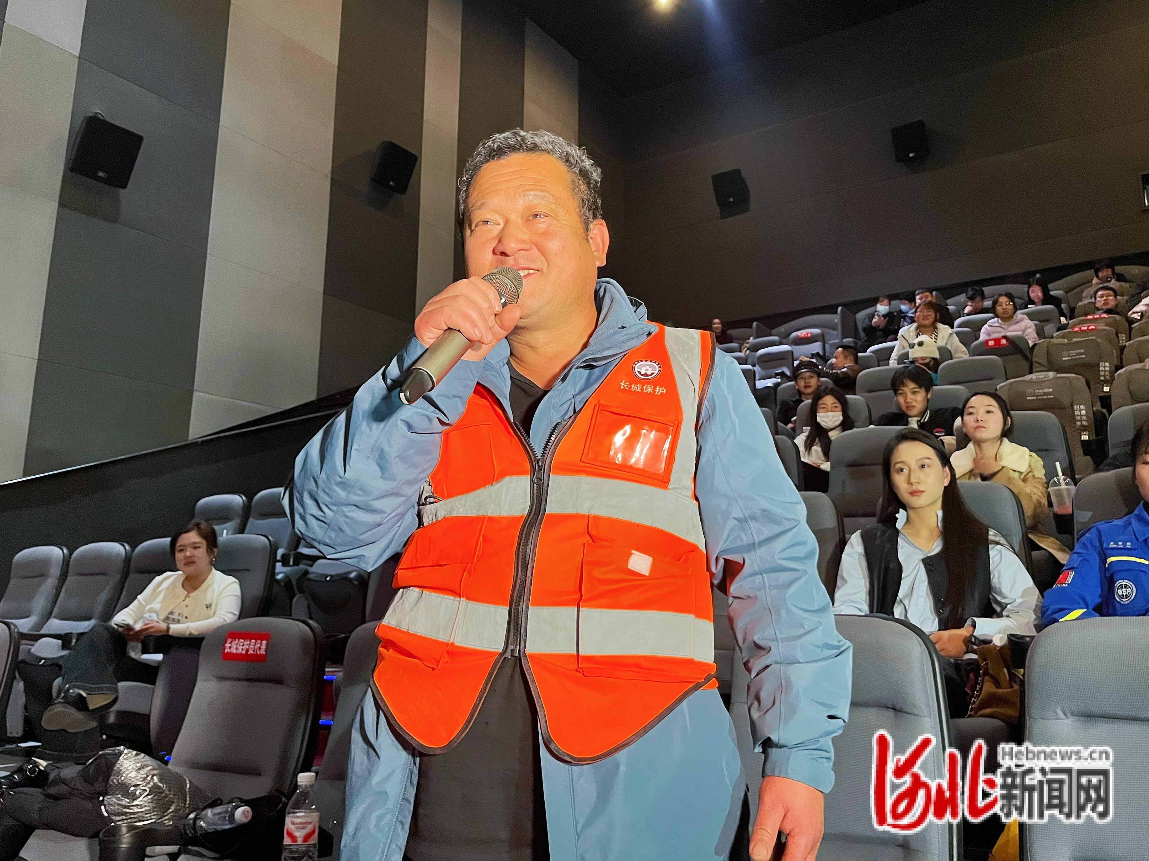 首映式上,迁安长城保护员与电影主创团队互动交流。河北日报记者师源摄