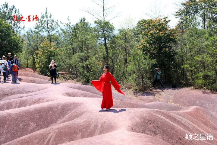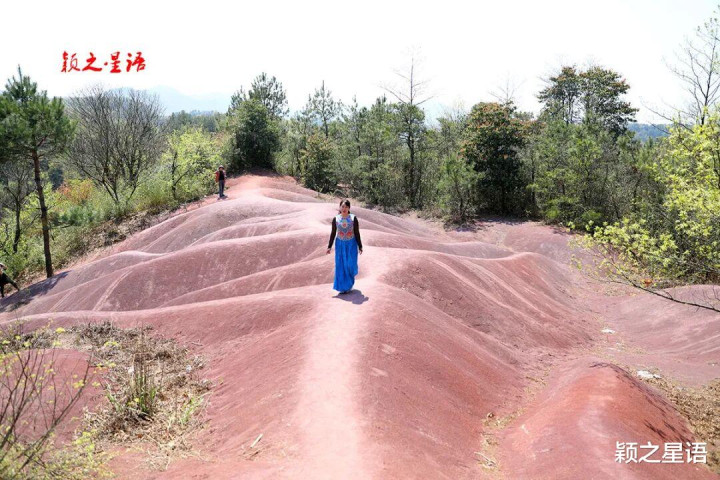 大岚镇还有一个网红打卡点,位于大岚镇政府所在的丁家畈村西南侧,也是一个突出的小山头,山顶不生草木,红砂丘裸露,红似火焰,是四明山区一道独特的自然奇观,地图上标识为“火焰山丹霞地貌景观”,被誉为宁波版“火焰山”。
