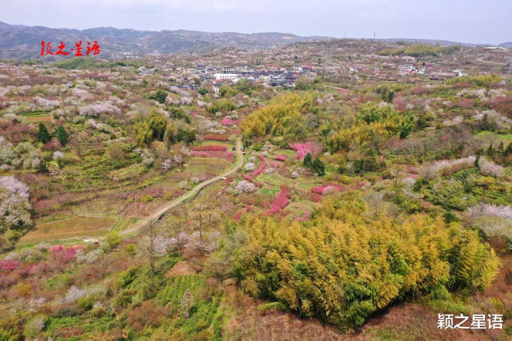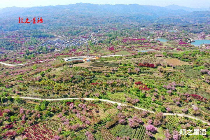 上马岗地处上马、下马、后朱、雅庄、新岚、白鹿六村合围之间,这里的樱花多为关山樱,粉红色,漫山遍野红樱胜开,红枫相间,喜庆耀眼,十里樱花十里尘,花样天上人间。