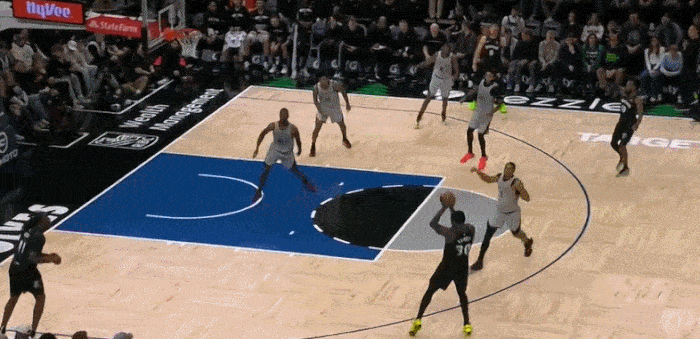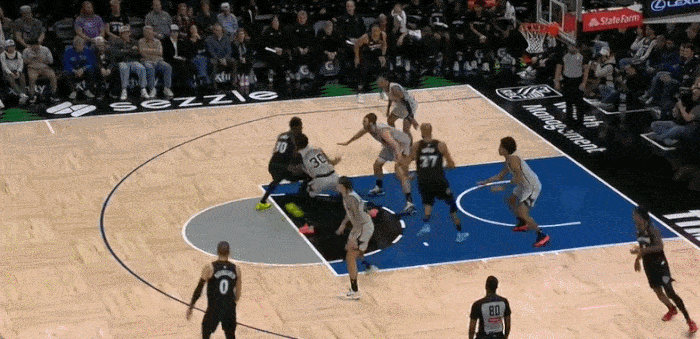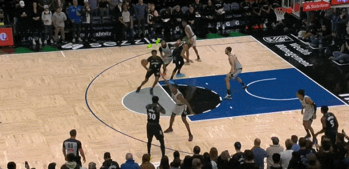 三分线45度策应 罚球线麦丹借戈贝尔无球掩护 中投命中