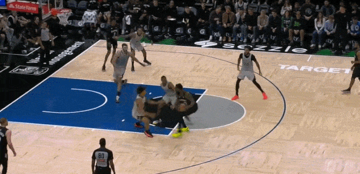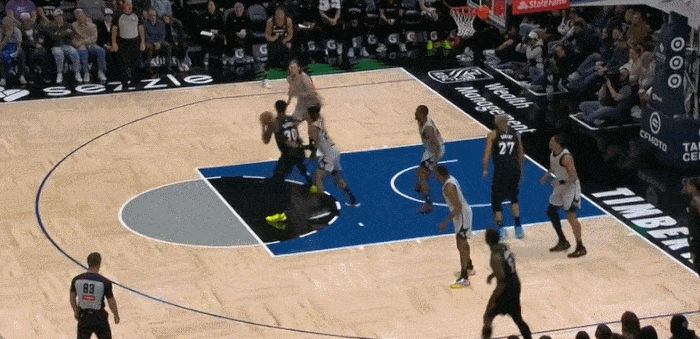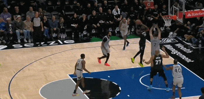 4-5号位挡拆 戈贝尔顺下 随后打中2+1